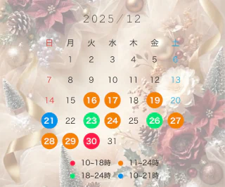 次回の出勤は来年の1月下旬の遅番(18時以降)を予定しております🙇♀️
